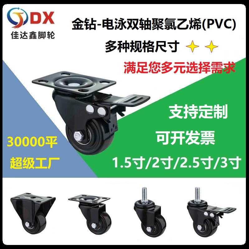 多功能脚轮1.5寸2寸2.5寸3寸金钻万向刹车丝杆固定静音家具轮-丰顺佳达鑫制造有限公司发布日期:2024-12-1
